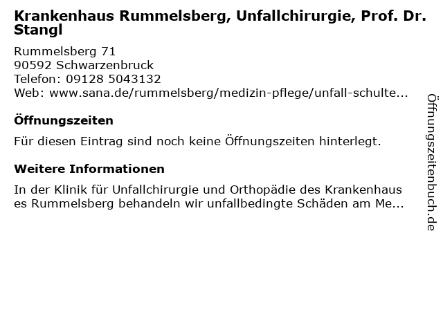 | Krankenhaus Rummelsberg, Unfallchirurgie, Prof. Dr. Stangl anrufen | |