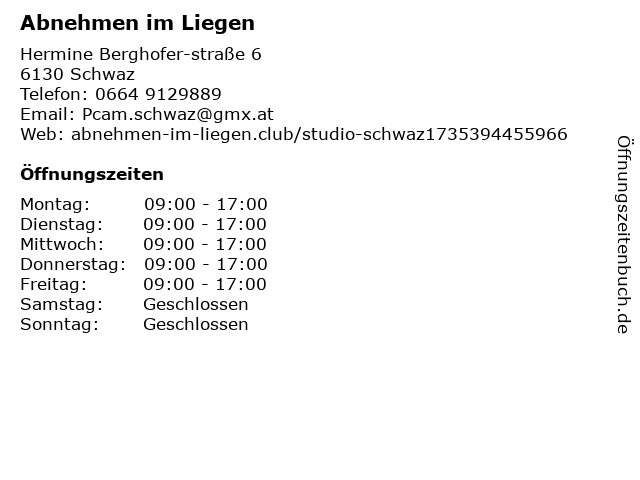 | Öffnungszeiten Abnehmen im Liegen in Schwaz anzeigen | |