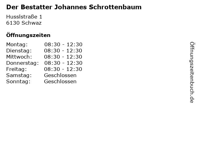 | Öffnungszeiten Der Bestatter Johannes Schrottenbaum in Schwaz anzeigen | |