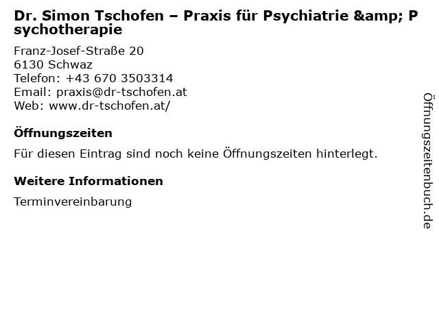 | Dr. Simon Tschofen – Praxis für Psychiatrie & Psychotherapie anrufen | |