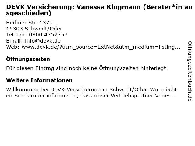 | DEVK Versicherung: Vanessa Klugmann (Berater*in ausgeschieden) anrufen | |