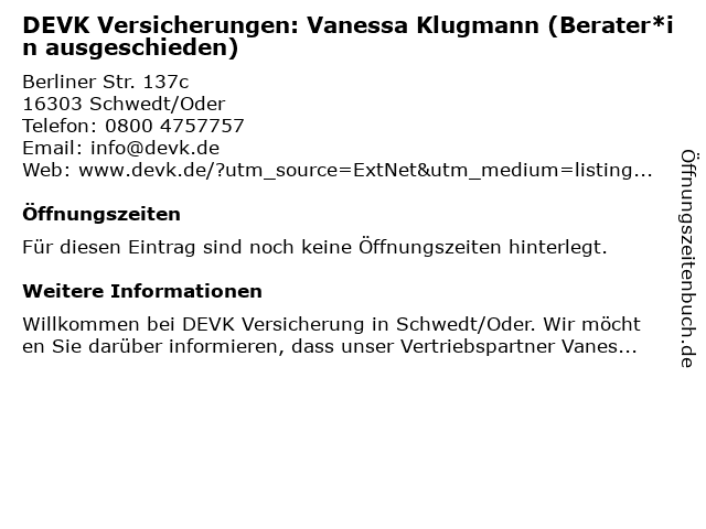 | DEVK Versicherungen: Vanessa Klugmann (Berater*in ausgeschieden) anrufen | |