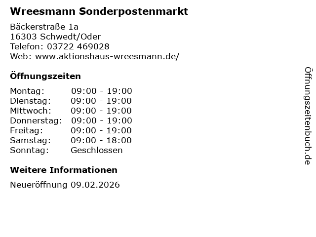 Branchen & Suchbegriffe zu Wreesmann Sonderpostenmarkt:sonderpostenmarkt, wreesmann |
