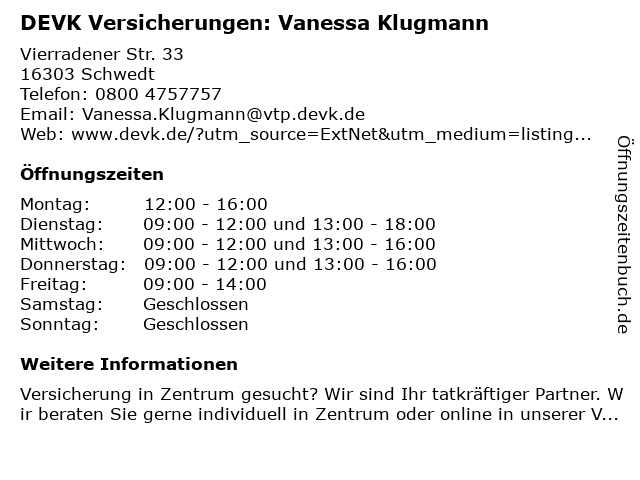 Branchen & Suchbegriffe zu DEVK Versicherungen: Vanessa Klugmann:altersvorsorge, autoversicherung, berufsunfähigkeitsversicherung, devk, gebäude- und hausratsversicherung, gewerbeversicherung, kfz-versicherung (motorrad), klugmann, lebensversicherung, mietrechtsschutzversicherung, reiseversicherungsagentur, vanessa, versicherungen |