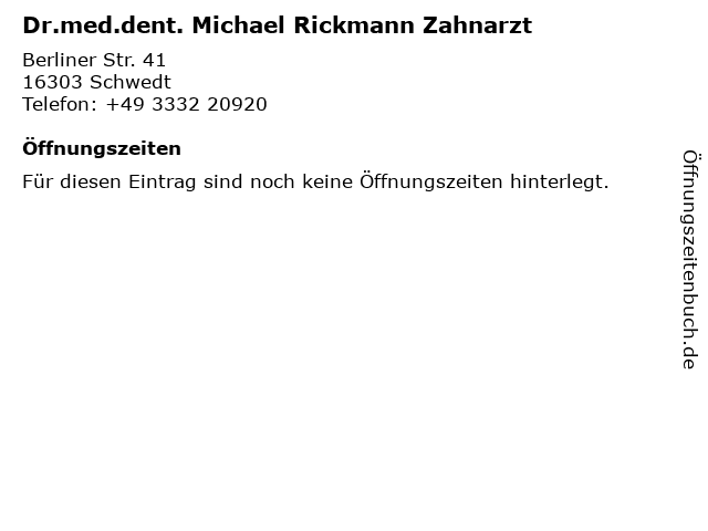 | Dr.med.dent. Michael Rickmann Zahnarzt anrufen | |