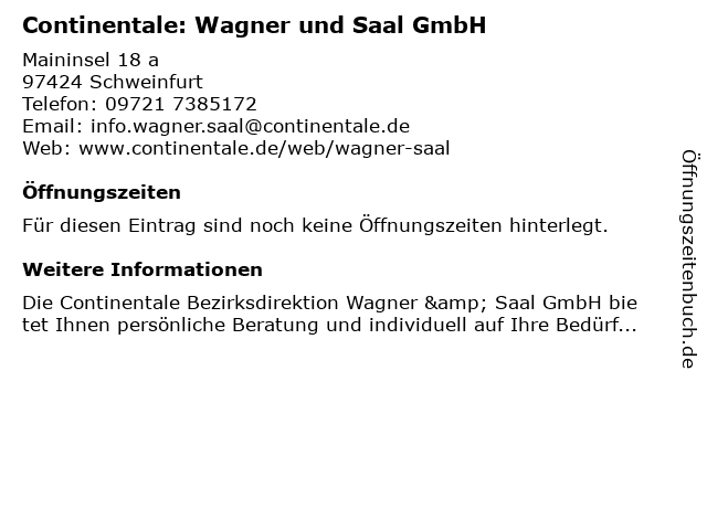 | Continentale: Wagner und Saal GmbH anrufen | |