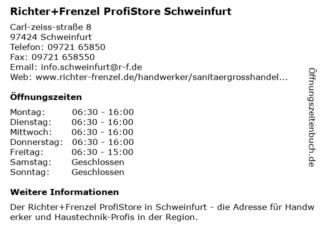 5 Richter+Frenzel ProfiStore Bad Königshofen (Entfernung: 30,08 km) Aubstädter Str. 11, 97631 Bad Königshofen i. Grabfeld 6 |