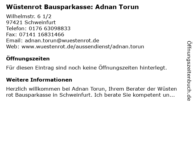 | Wüstenrot Bausparkasse: Adnan Torun anrufen | |