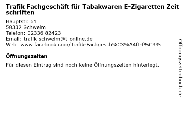 | Trafik Fachgeschäft für Tabakwaren E-Zigaretten Zeitschriften anrufen | |