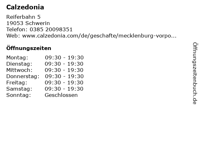 | Öffnungszeiten Calzedonia in Schwerin anzeigen | |