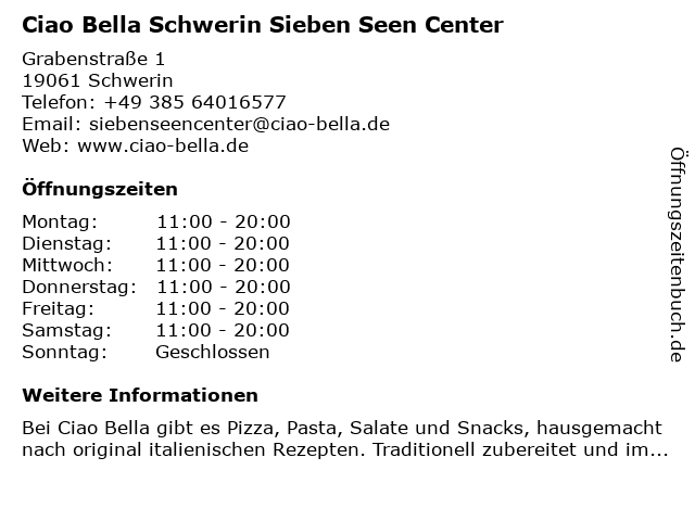 Branchen & Suchbegriffe zu Ciao Bella Schwerin Sieben Seen Center:bella, center, ciao, italienisch, pasta, pizza, restaurant, salat, schwerin, seen, sieben, to go, vegetarisch |