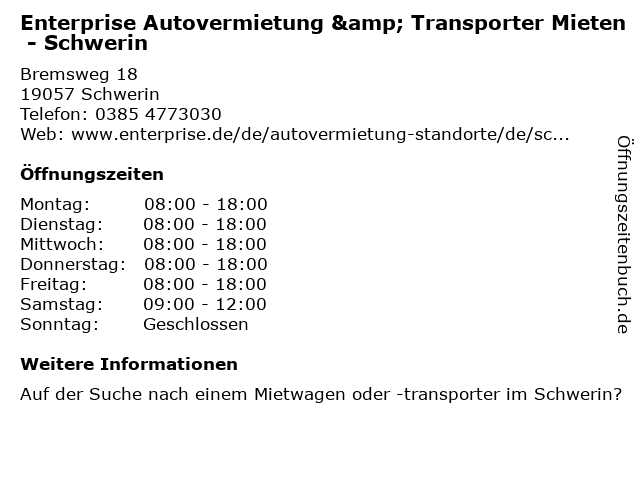 Branchen & Suchbegriffe zu Enterprise Autovermietung & Transporter Mieten - Schwerin:autovermietung, enterprise, mieten, schwerin, transporter |