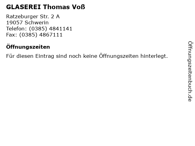 | Öffnungszeiten GLASEREI Thomas Voß in Schwerin anzeigen | |