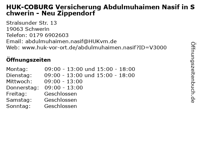 Branchen & Suchbegriffe zu HUK-COBURG Versicherung Abdulmuhaimen Nasif in Schwerin - Neu Zippendorf:abdulmuhaimen, altersvorsorge, autoversicherung, berufsunfähigkeitsversicherung, coburg, gebäude- und hausratsversicherung, huk, kfz-versicherung (motorrad), nasif, neu, schwerin, tierversicherung, versicherung, zahnmedizinische versicherung, zippendorf |
