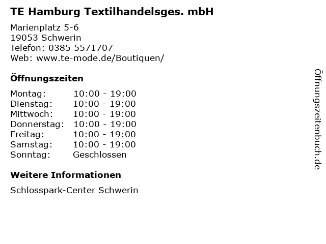 Branchen & Suchbegriffe zu TE Hamburg Textilhandelsges. mbH:accessoires, center, damenbekleidung, damenmode, mbh, schlosspark, schwerin, te, textilhandelsges. |