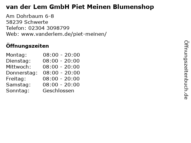 Branchen & Suchbegriffe zu van der Lem GmbH Piet Meinen Blumenshop:blume, blumen, blumendekorationen, blumenshop, deko, floristik, leben, lem, lieblingsblume, meinen, mode, moderne floristik, piet, stielsache, topfpflanzen, trauerfloristik, van, vergissmeinnicht |