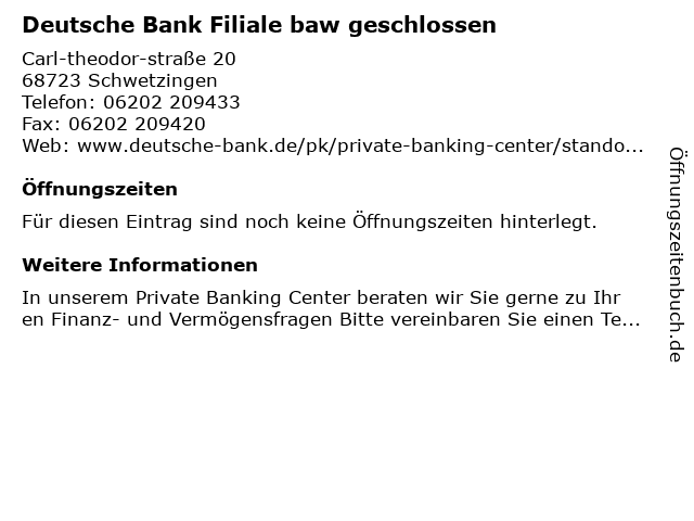 | Deutsche Bank Filiale baw geschlossen anrufen | |
