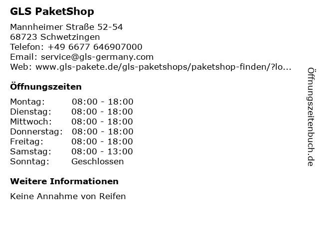 GLS PaketShop in Schwetzingen: Telefonnummer, Öffnungszeiten und Adresse