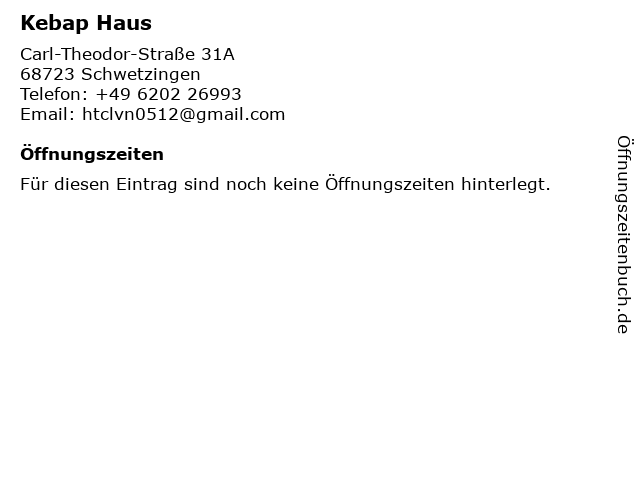 Öffnungszeiten Kebap Haus in Schwetzingen anzeigen | |