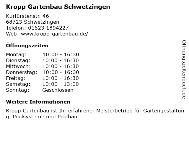 Branchen & Suchbegriffe zu Kropp Gartenbau Schwetzingen:gartenbau, kropp, swimmingpoolpflege |