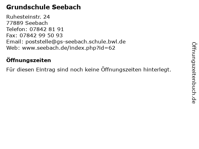 | Öffnungszeiten Grundschule Seebach in Seebach anzeigen | |