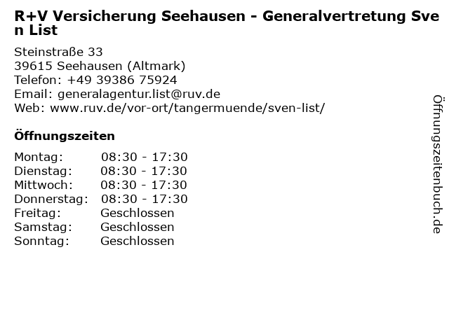 4 Allianz Versicherung Thomas Stieglmaier Generalvertretung (Entfernung: 11,47 km) Bismarker Straße 68 a, 39606 Osterburg (Altmark) 6 |