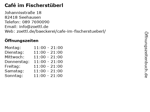 | Telefonnummer Café im Fischerstüberl in Seehausen (089 7690090) anrufen | |