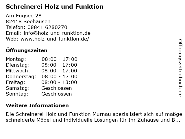 | 2 Holz & Funktion Schreinerfachwerkstätte für Inneneinrichtung GmbH (Entfernung: 0,02 km) Am Fügsee 28, 82418 Seehausen am Staffelsee 6 |