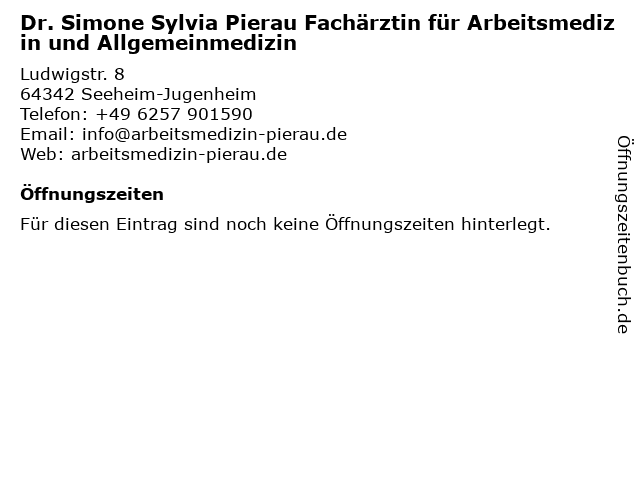 | Dr. Simone Sylvia Pierau Fachärztin für Arbeitsmedizin und Allgemeinmedizin anrufen | |