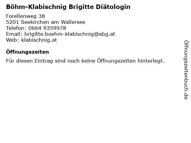 | Böhm-Klabischnig Brigitte Diätologin anrufen | |