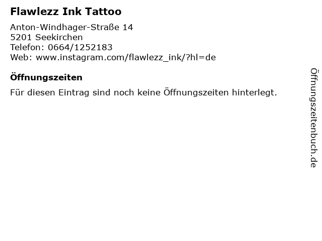 | Öffnungszeiten Flawlezz Ink Tattoo in Seekirchen anzeigen | |