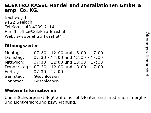 Branchen & Suchbegriffe zu ELEKTRO KASSL Handel und Installationen GmbH & Co. KG.:elektro, elektro-fachhandel seelach, elektroinstallation, elektronik, fachhandel, gebäudeinstallation, handel, installationen, kassl, kg., lichtplanung, lichttechnik, reparaturen, service |
