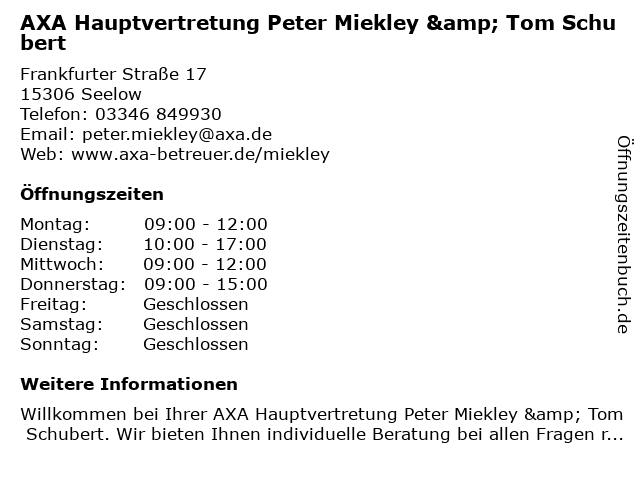 Branchen & Suchbegriffe zu AXA Hauptvertretung Peter Miekley & Tom Schubert:altersvorsorge, autoversicherung, axa, berufshaftpflichtversicherung, gebäude- und hausratsversicherung, hauptvertretung, kfz-versicherung (motorrad), lebensversicherung, miekley, peter, schubert, tom, unternehmen für versicherungsfachfragen, zahnmedizinische versicherung |