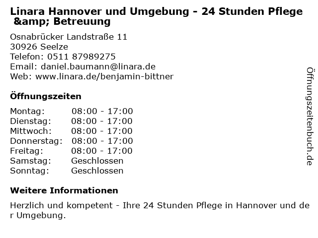 Branchen & Suchbegriffe zu Linara Hannover und Umgebung - 24 Stunden Pflege & Betreuung:24, betreuung, linara, pflege, stunden, umgebung |
