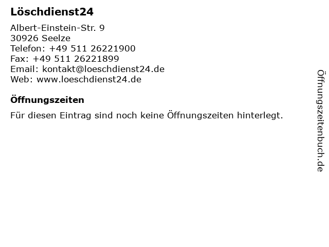 | Öffnungszeiten Löschdienst24 in Seelze anzeigen | |