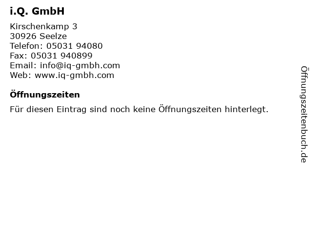 | Öffnungszeiten i.Q. GmbH in Seelze anzeigen | |