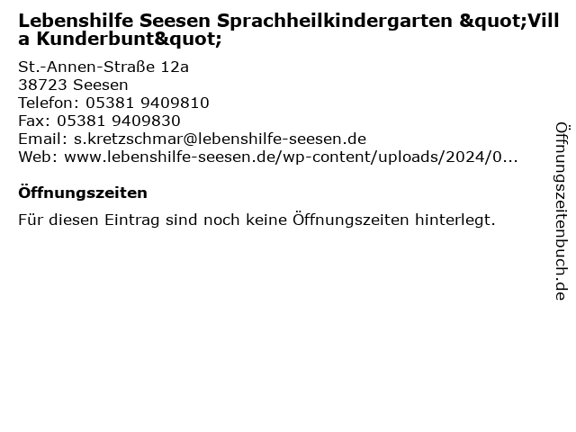 | Lebenshilfe Seesen Sprachheilkindergarten "Villa Kunderbunt" anrufen | |