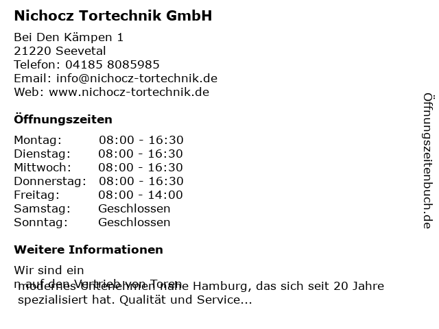 | Adresse Nichocz Tortechnik GmbH in Seevetal anzeigen |
