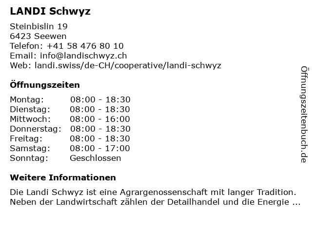 | Öffnungszeiten LANDI Schwyz in Seewen anzeigen | |