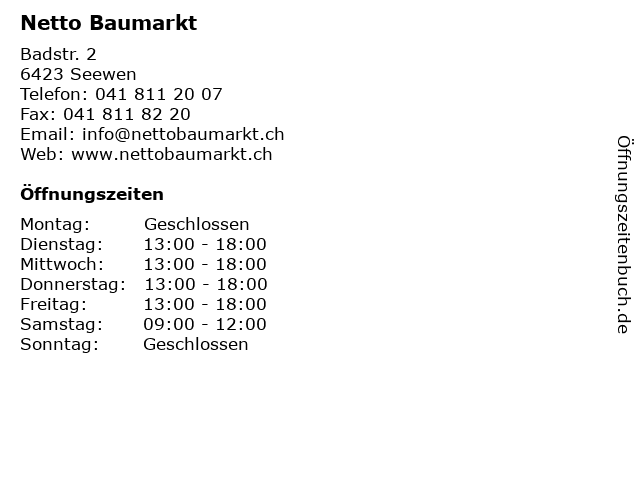 | Öffnungszeiten Netto Baumarkt in Seewen anzeigen | |