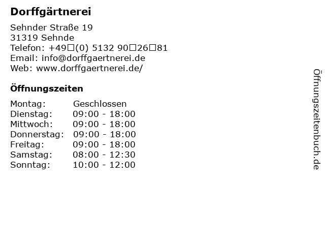 | Öffnungszeiten Dorffgärtnerei in Sehnde anzeigen | |