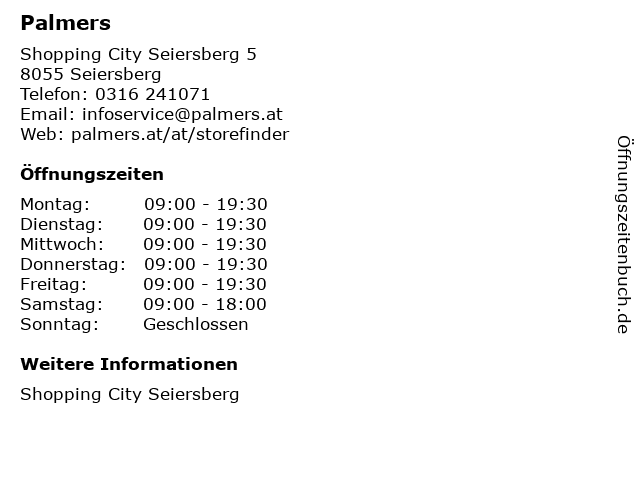 | Öffnungszeiten Palmers in Seiersberg anzeigen | |