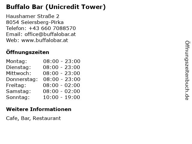 Branchen & Suchbegriffe zu Buffalo Bar (Unicredit Tower):bar, buffalo, cafe, restaurant, tower, unicredit |