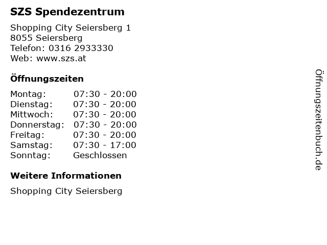| Öffnungszeiten SZS Spendezentrum in Seiersberg anzeigen | |