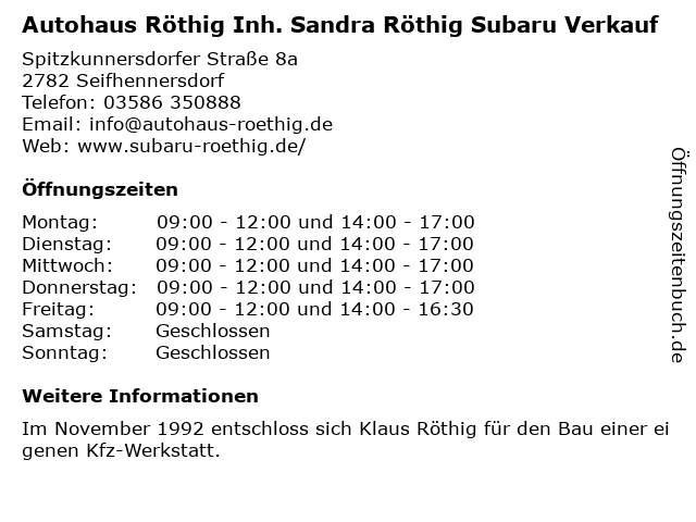 Branchen & Suchbegriffe zu Autohaus Röthig Inh. Sandra Röthig Subaru Verkauf:autobroker, autohaus, röthig, sandra, second-hand-laden, subaru, verkauf |