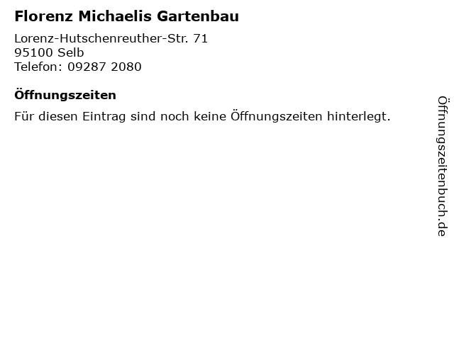 | Öffnungszeiten Florenz Michaelis Gartenbau in Selb anzeigen | |