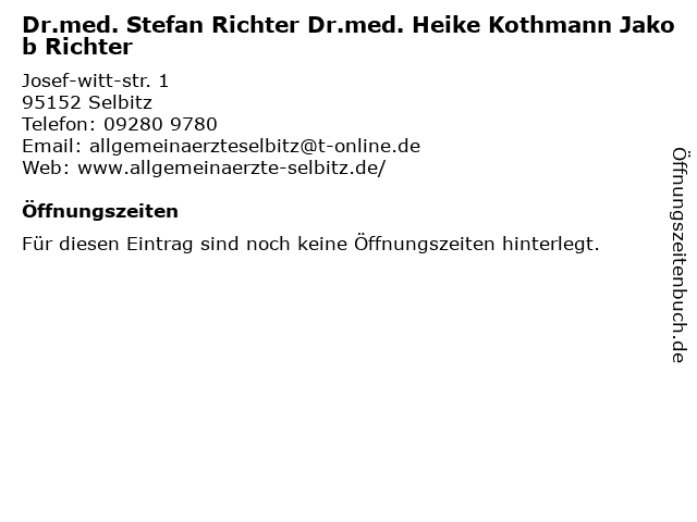 | Dr.med. Stefan Richter Dr.med. Heike Kothmann Jakob Richter anrufen | |