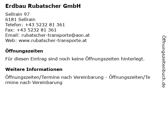 | Öffnungszeiten Erdbau Rubatscher GmbH in Sellrain anzeigen | |