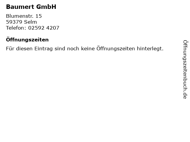 | Öffnungszeiten Baumert GmbH in Selm anzeigen | |