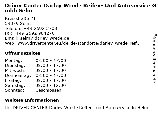 Branchen & Suchbegriffe zu Driver Center Darley Wrede Reifen- Und Autoservice Gmbh Selm:autoservice, center, darley, driver, felgen, reifen, reifeneinlagerung, reifenwechsel, saisonwechsel, schläuche, selm, wrede |